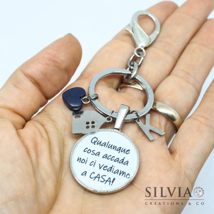 Portachiavi per casa con frase noi ci vediamo a casa e charms