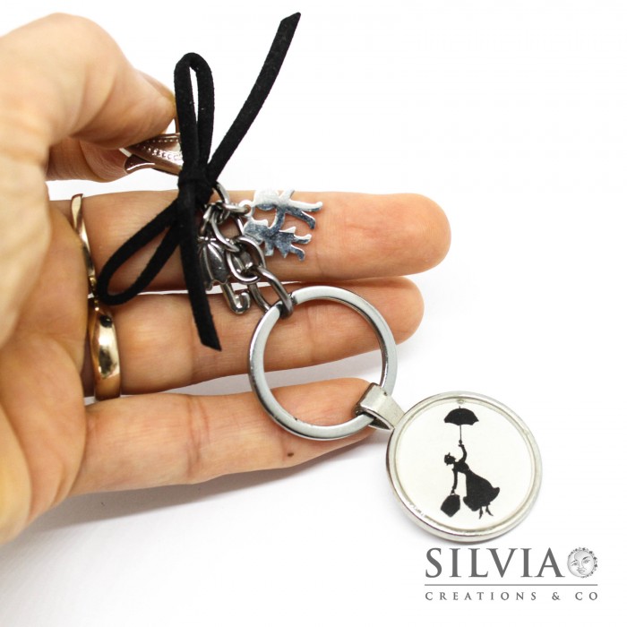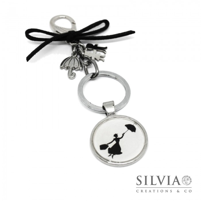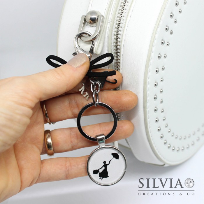 Portachiavi a tema Mary Poppins con charm e fiocco