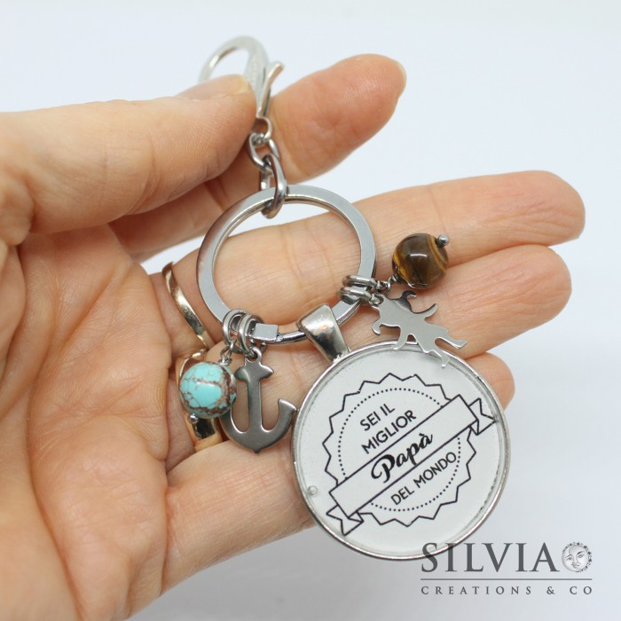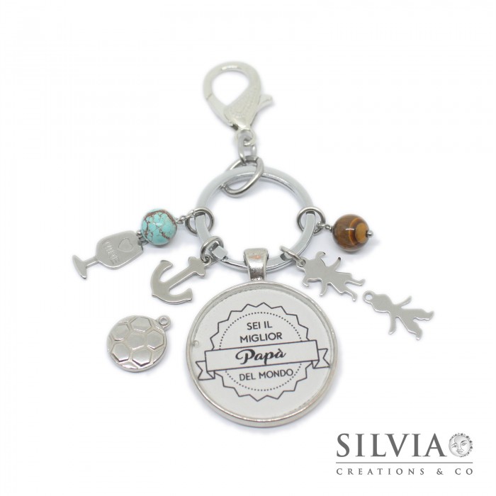 Portachiavi con scritta Sei il miglior Papà del mondo e charms