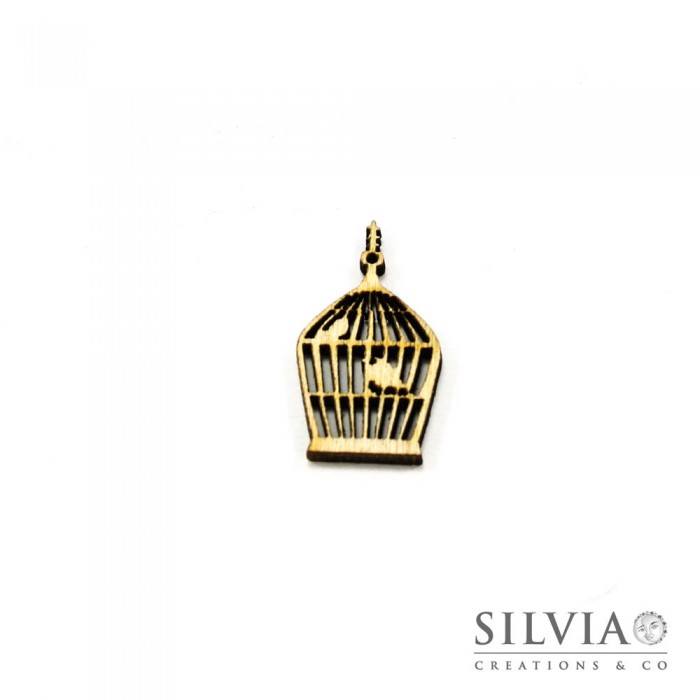 Intaglio di legno a forma di gabbietta degli uccellini da 16x30 mm. Ideali per lo scrapbooking, possono essere usati per decorare carte, biglietti, scatole, diari, album, ecc.