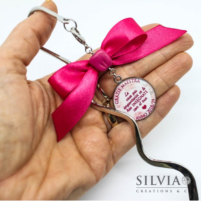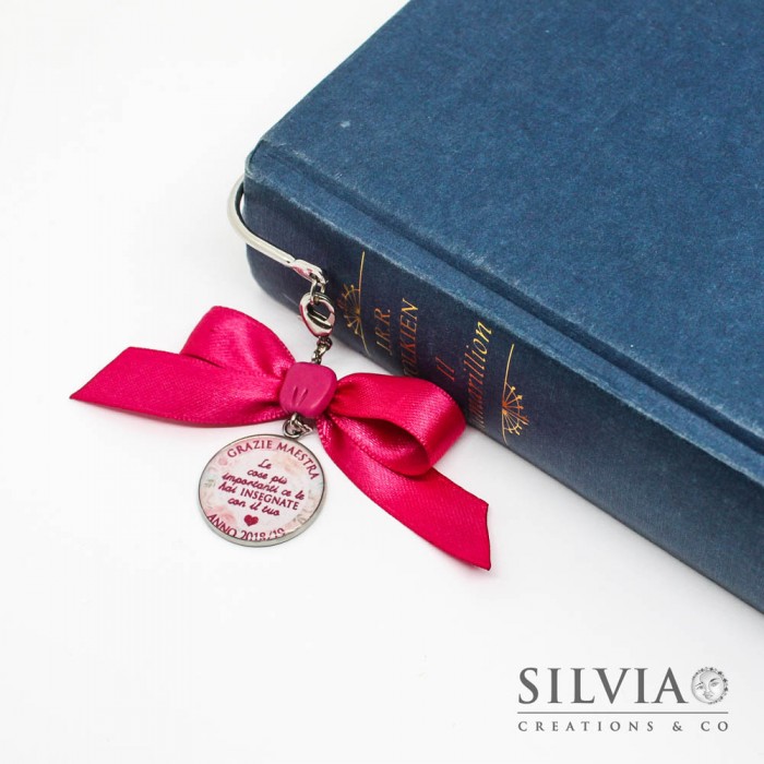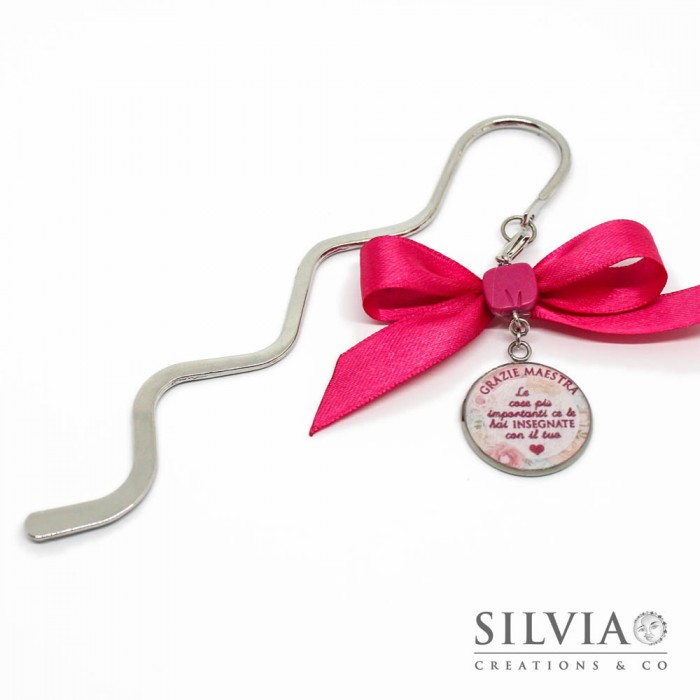 Segnalibro bacchetta rodio con frase per ringraziare la maestra colore fucsia
