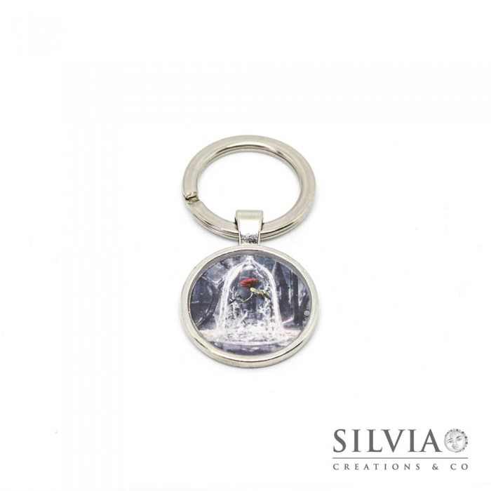 Portachiavi rosa la Bella e la Bestia da 25 mm