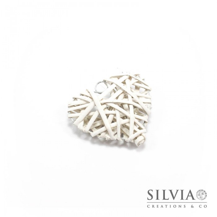 Cuore bianco in vimini 10x10cm